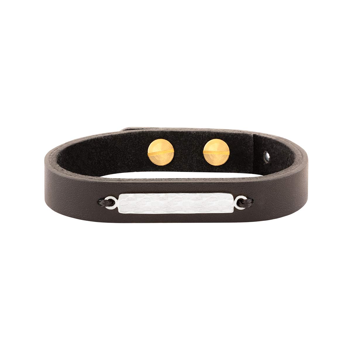 Elevate your accessory game with our Hammered Plate Leather Bracelet. Handcrafted with 18k gold and hammered for a unique textured finish, this bracelet exudes sophistication and luxury. Perfect for adding an elegant touch to any outfit.