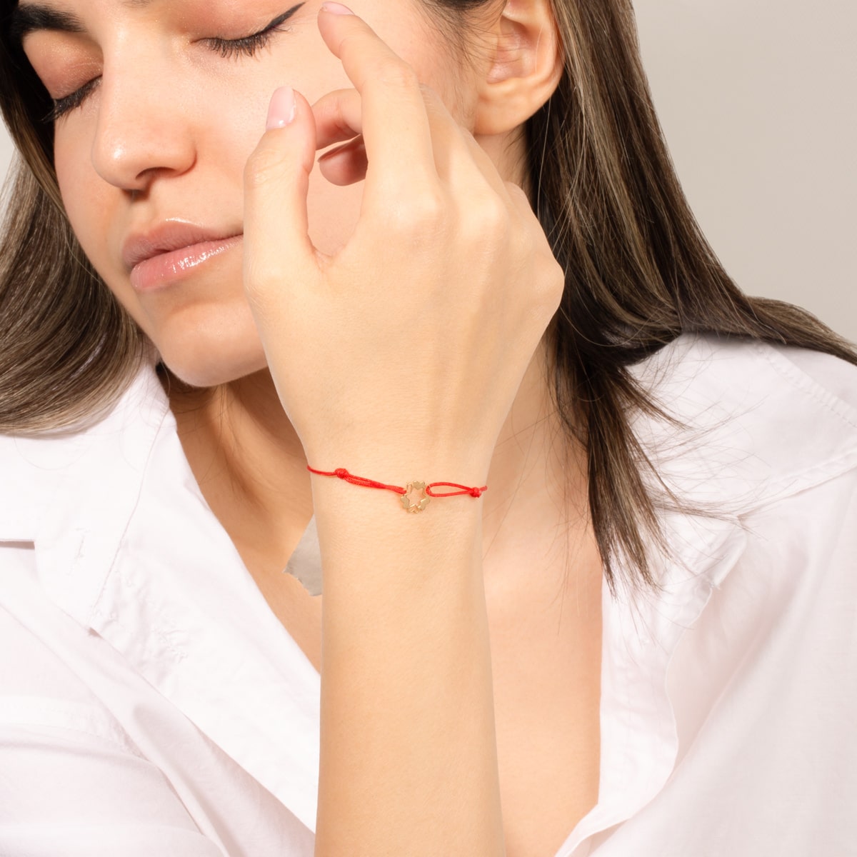 Add a touch of elegance to your outfit with our Heart Circle Cord Bracelet. Crafted with 18k gold, this bracelet features a delicate heart and circle design that is both sophisticated and timeless. Elevate your style with this luxurious accessory.