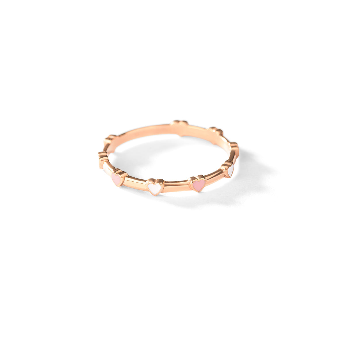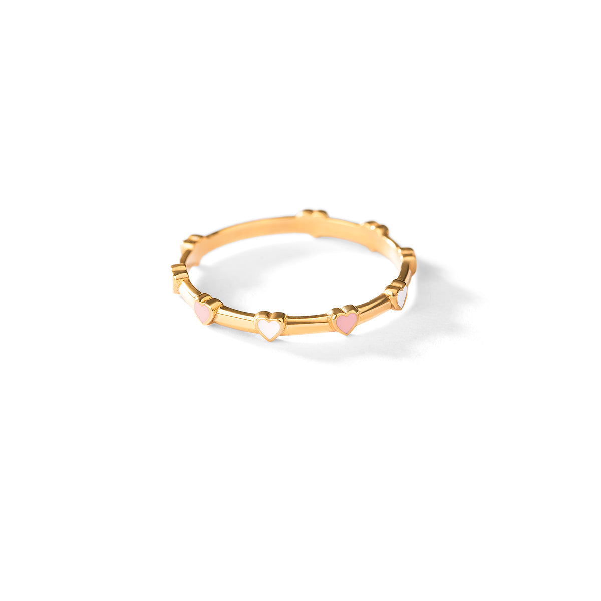 Indulge in luxury with our Heart Thread Enamel Ring. Crafted with 18K gold, it features delicate Pink and white enamel hearts that add a charming touch to any outfit. Elevate your style and express your love with this exclusive piece.