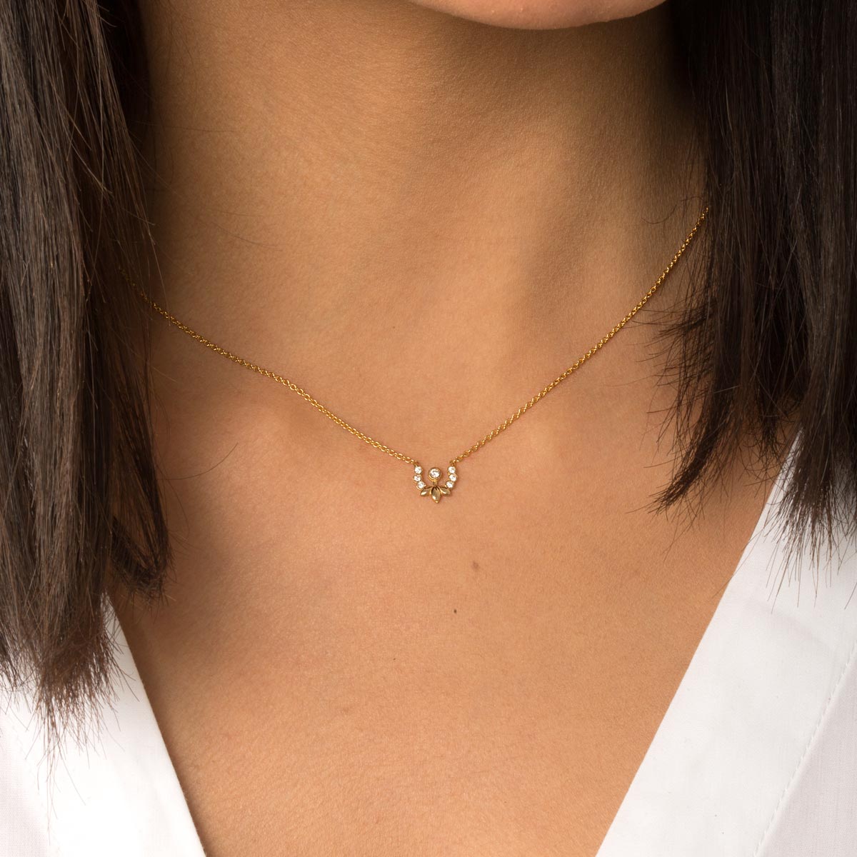 Introducing the Hirkan Tree Necklace. Crafted with 18k gold and adorned with sparkling diamonds, this necklace exudes elegance and sophistication. Channel the beauty of nature with this exclusive piece, a perfect addition to any outfit. Make a statement with this luxurious necklace, a symbol of timeless luxury.