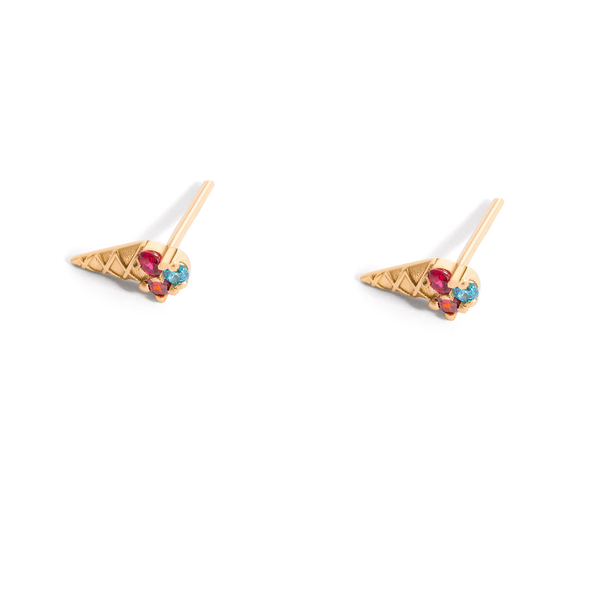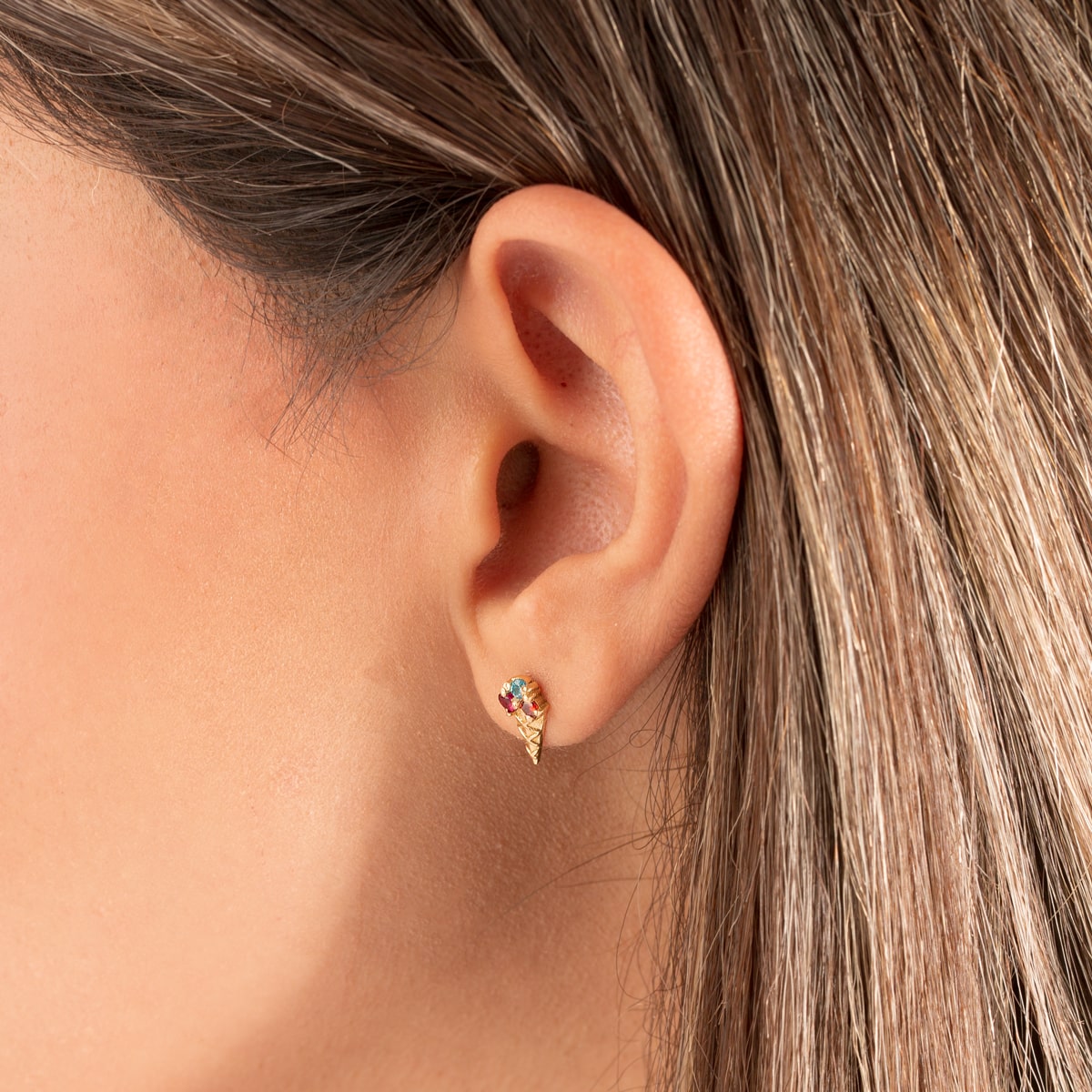 Indulge in these luxurious 18k gold Ice Cream Cone Stud Earrings. These decadent earrings will add a touch of sophistication and exclusivity to any outfit. Enhance your style with these tasteful and elegant studs.