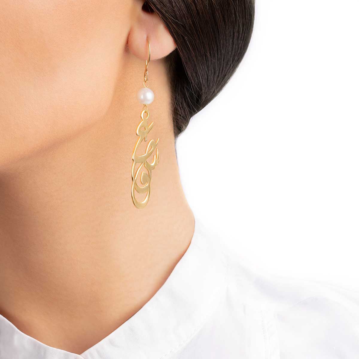 Our Pearl Love Drop Earrings add a touch of sophistication to any outfit. Crafted from 18k solid gold and featuring lustrous pearls, these earrings are truly a representation of "عشق", the Arabic word for love. Elevate your style and experience the luxury of timeless beauty with our Pearl Love Drop Earrings.