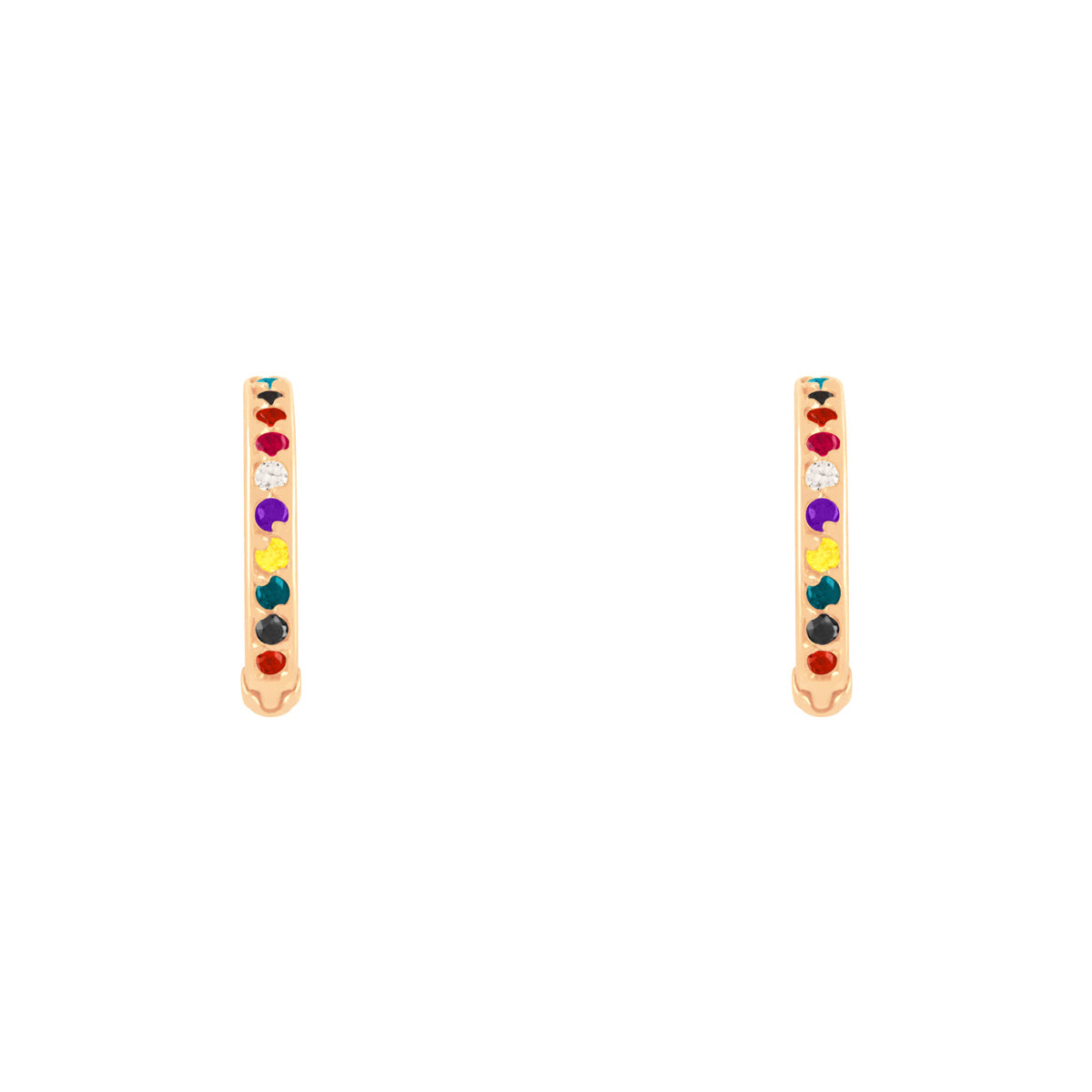 Indulge in the opulent elegance of our Linda Hoop Earrings. Crafted from 18k solid gold, these exquisite earrings feature stunning and colorful gemstones. Elevate your look with a touch of luxury and sophistication.