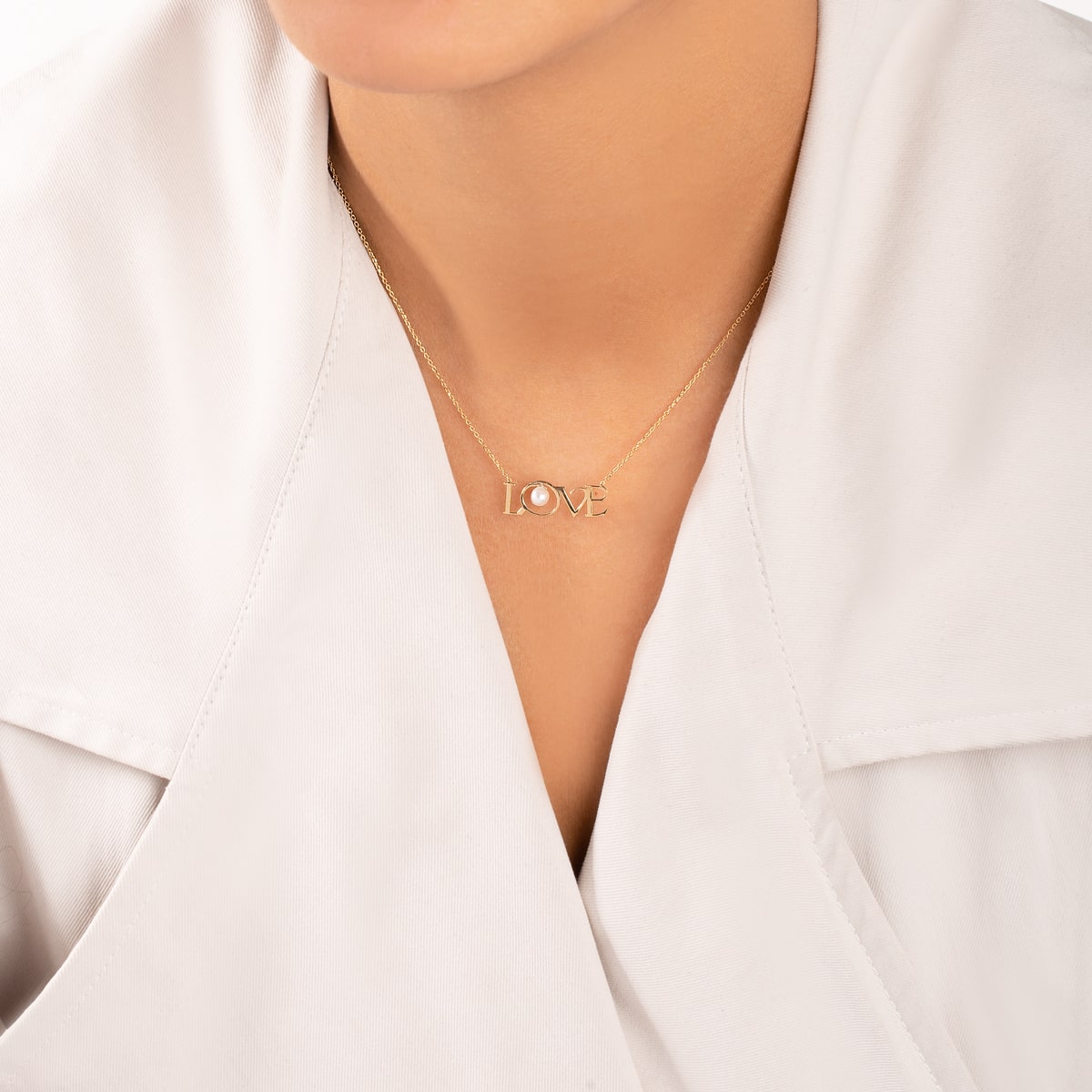 Indulge in luxury with our Love Necklace, crafted from 18k solid gold and adorned with a lustrous pearl. Exude elegance and sophistication with this timeless piece, perfect for any occasion. A symbol of love, this necklace is a must-have for your collection.