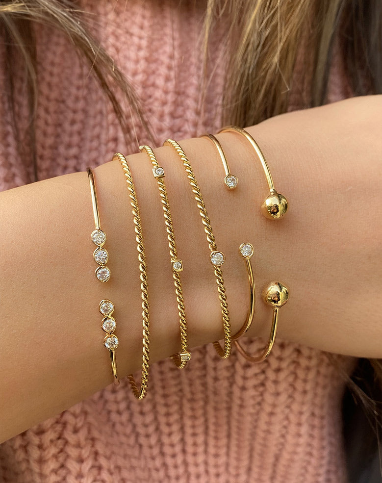 Embrace the timeless elegance of our Luna Twisted Bangle. Crafted from 18k gold and adorned with sparkling diamonds, this piece is a true luxury statement. The intricate twisted design adds a touch of sophistication and refinement to any outfit. Elevate your style and radiate confidence with this exclusive bangle.