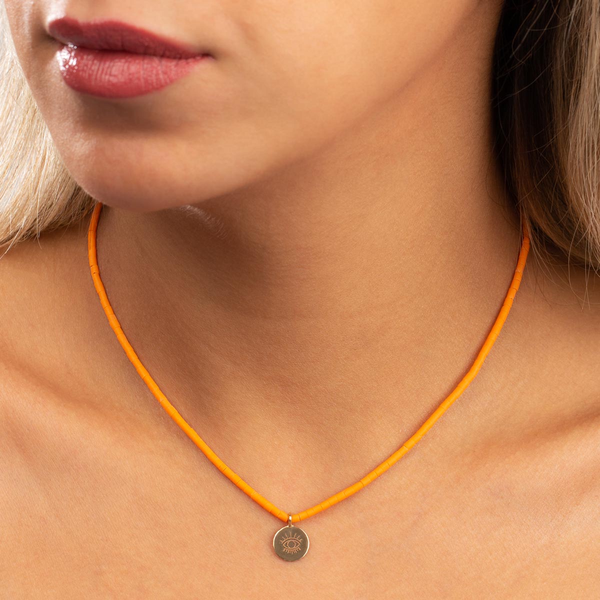 Orange Flora Eye Stone Necklace