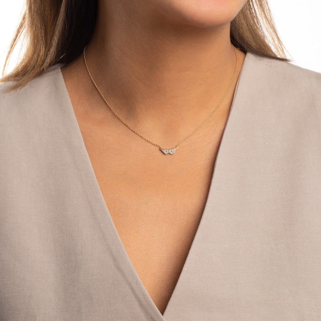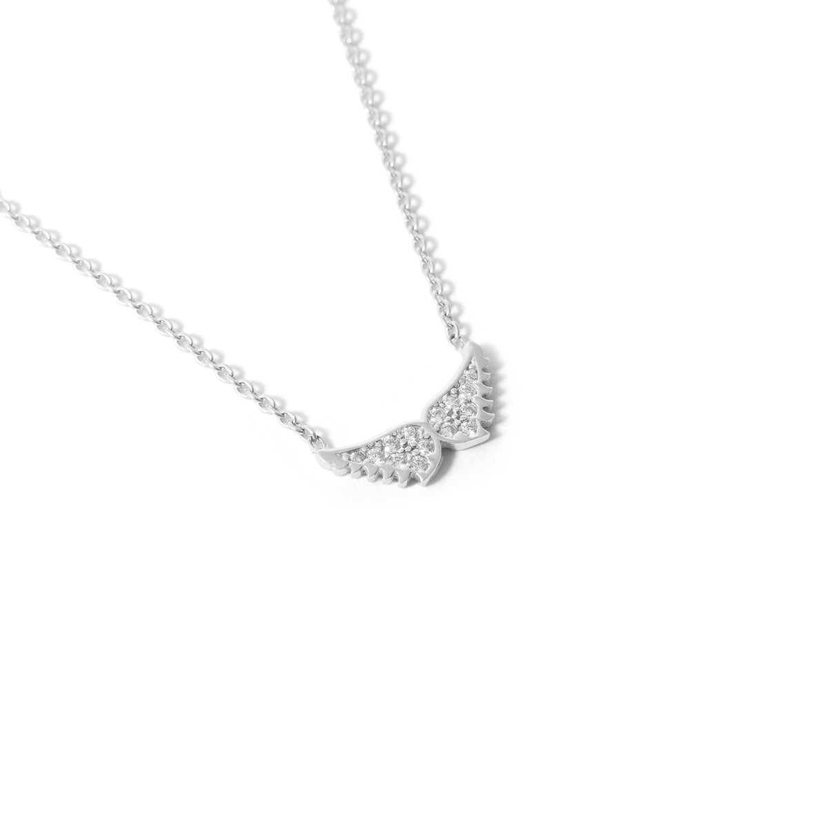 Elevate your style with our Pavé Diamond Angel Necklace. Crafted with 18K gold and adorned with a delicate pendant featuring stunning angel wings encrusted with fine natural diamonds. Embodying grace and elegance, this necklace is a luxurious addition to any collection.