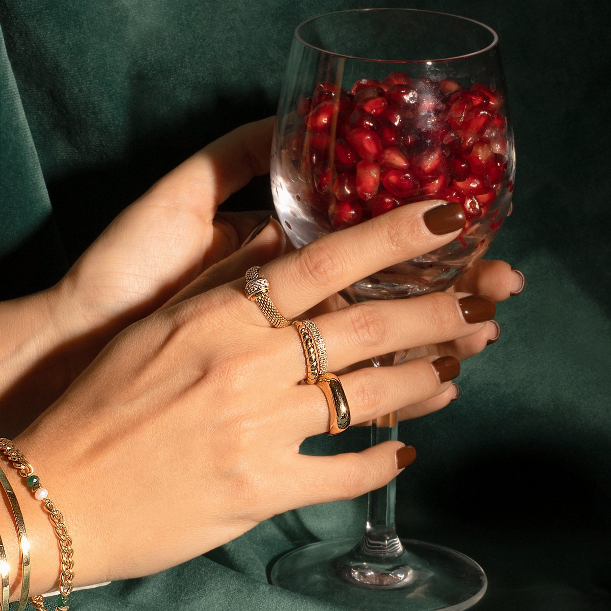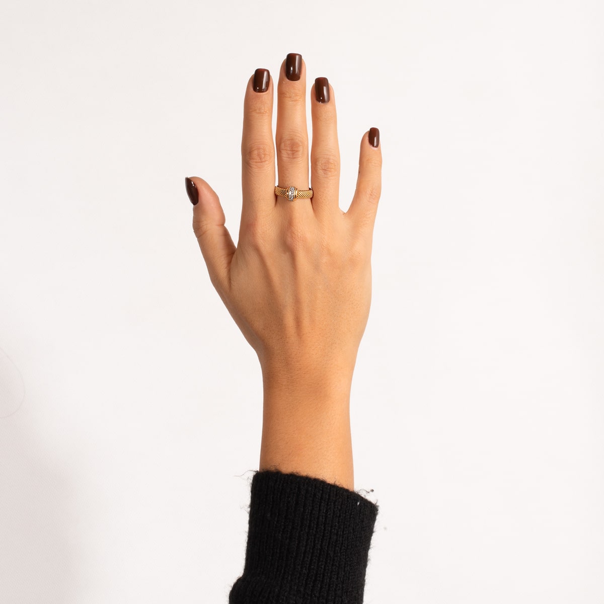 Indulge in luxury with our Pave Diamond Dotted Ring. Made with 18k solid gold, this ring features a signet design adorned with a stunning pave diamond pattern. The dotted texture adds a unique touch to this exquisite piece, making it a must-have for any elegant and sophisticated look. Elevate your style with this exclusive ring.