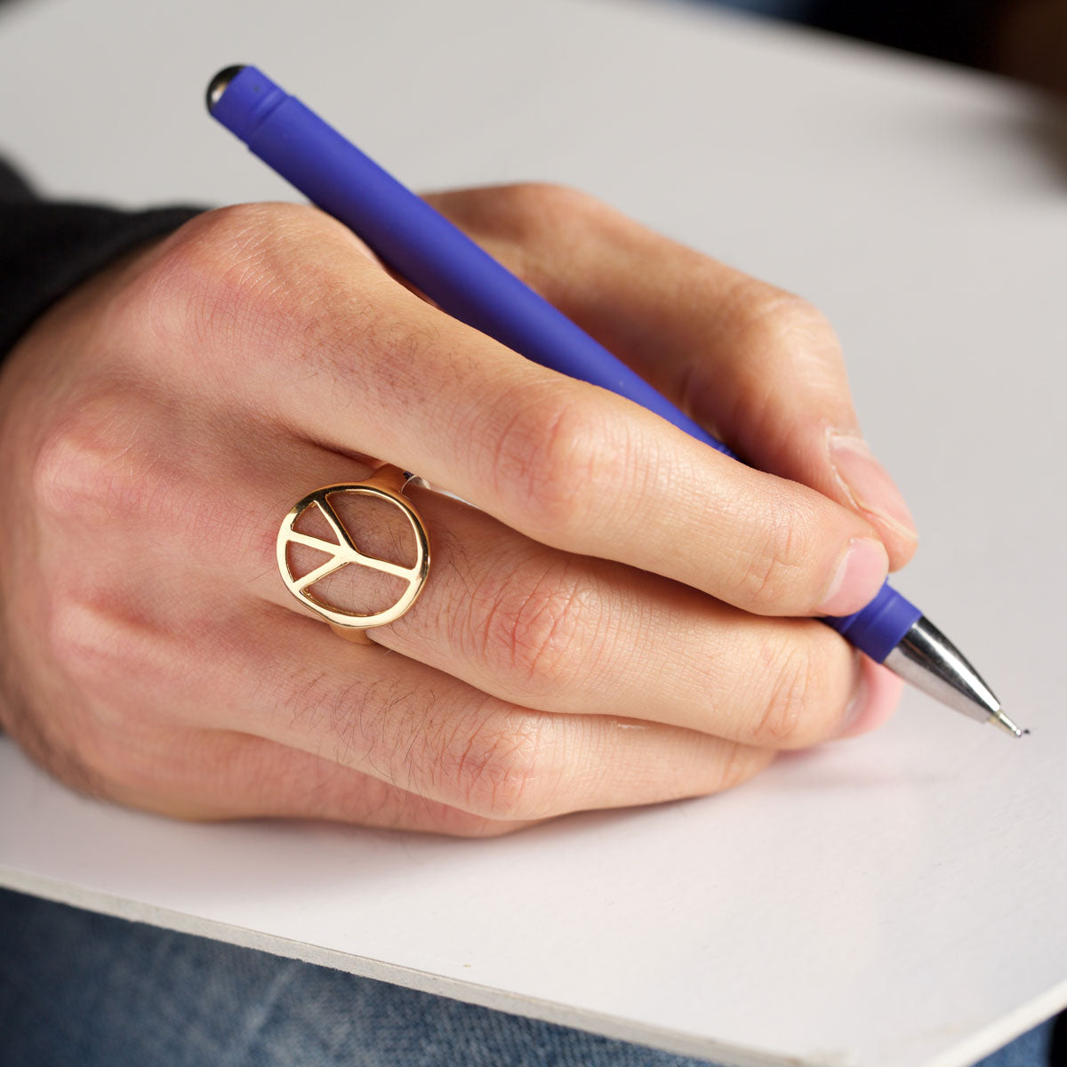 Indulge in luxury and elegance with our Peace Ring. Handcrafted with 18k gold, this exclusive piece is designed for men who appreciate the finer things in life. Exuding sophistication and style, let this ring be a symbol of peace and harmony in your everyday life.