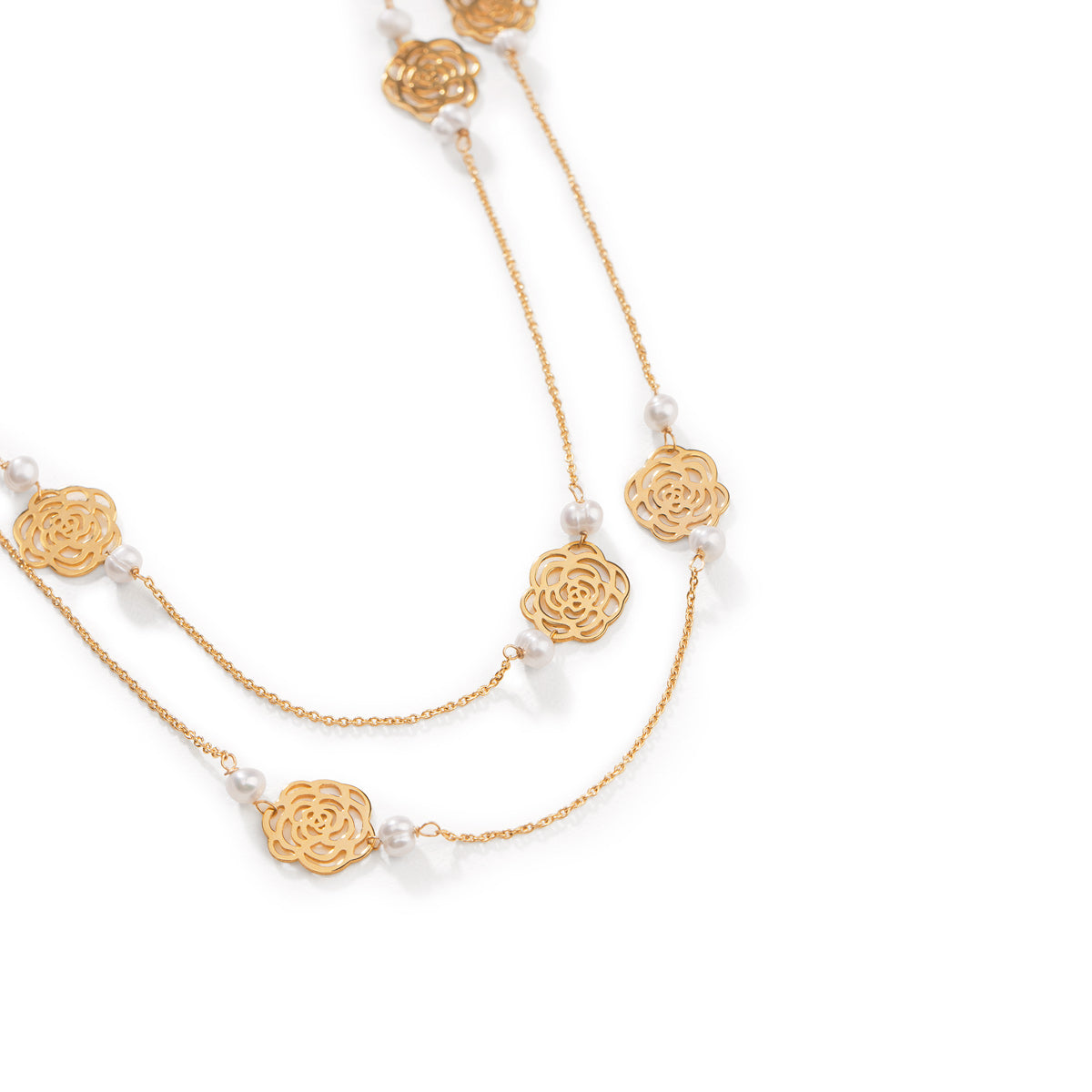 Add a touch of elegance to any outfit with our Pearl and Flower Chain Necklace. Made from 18k gold, this necklace features delicate flowers and lustrous pearls that exude sophistication and luxury. Perfect for any occasion, this necklace is sure to make a statement and elevate your style.