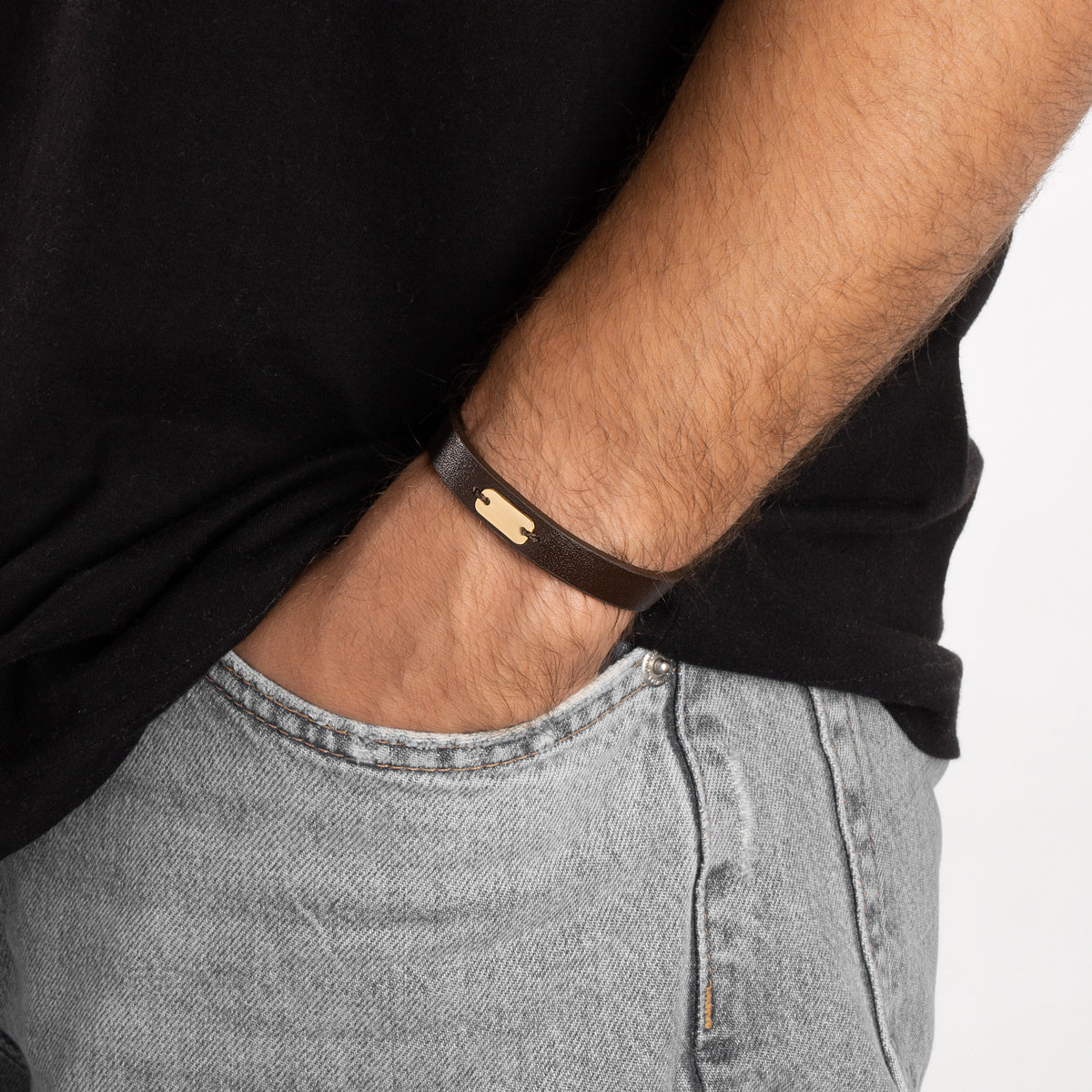 Indulge in this luxurious Plate Leather Bracelet crafted with 18kgold. Elevate your style and show off your sophisticated taste with this exquisite piece. The leather adds a touch of edginess, while the gold plate exudes elegance. Make a statement with this exclusive bracelet.