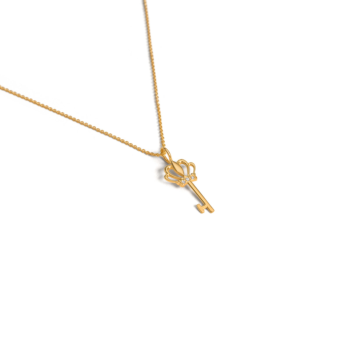 Unlock the beauty of luxury with our Princess Diamond Key necklace. Crafted from 18K gold, this key-shaped pendant is adorned with a fine natural diamond, adding a touch of elegance to any outfit. Experience the regal allure and timeless sophistication of this exclusive piece.