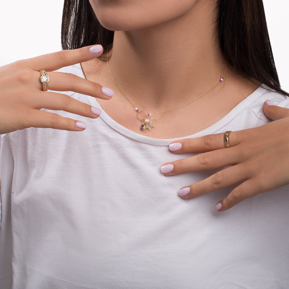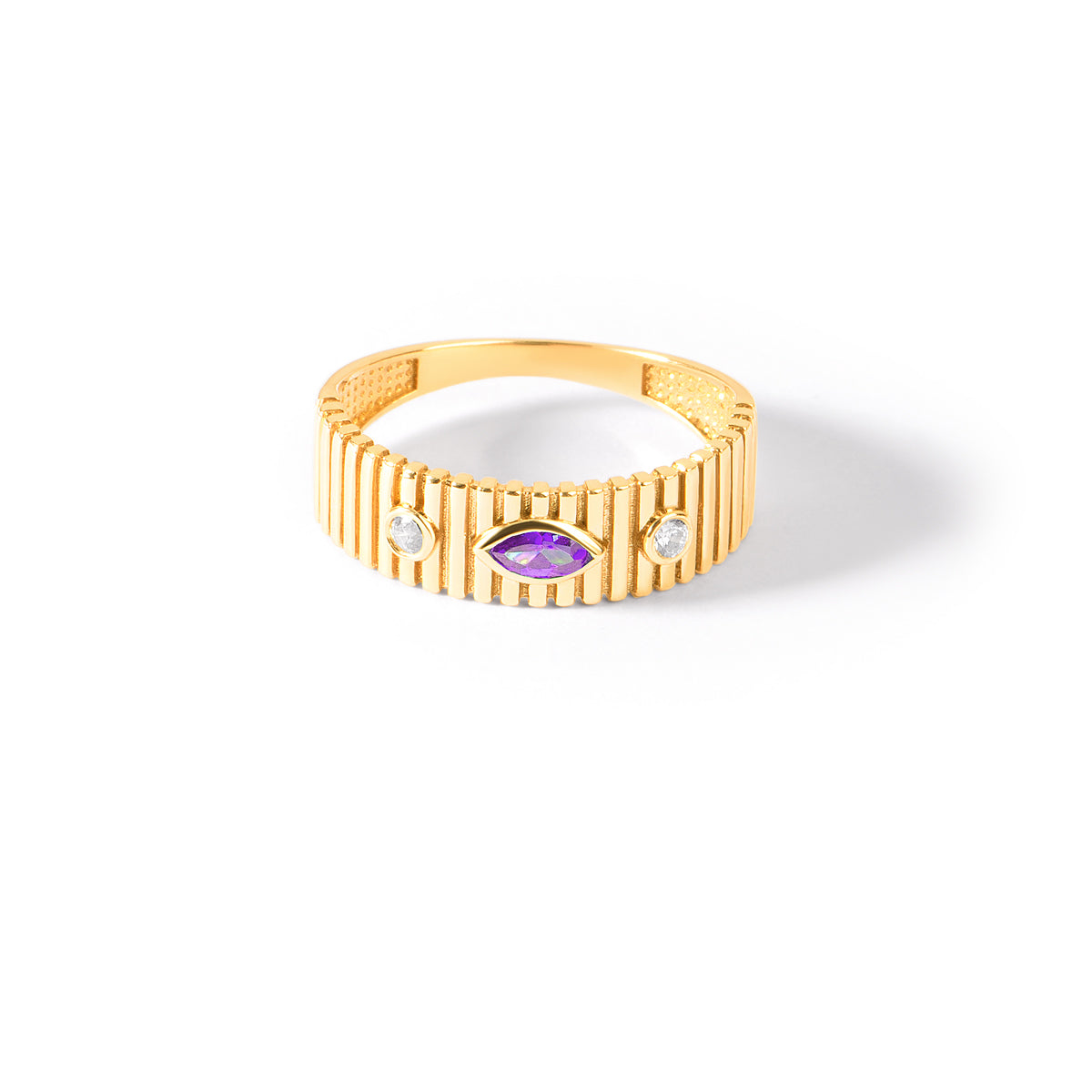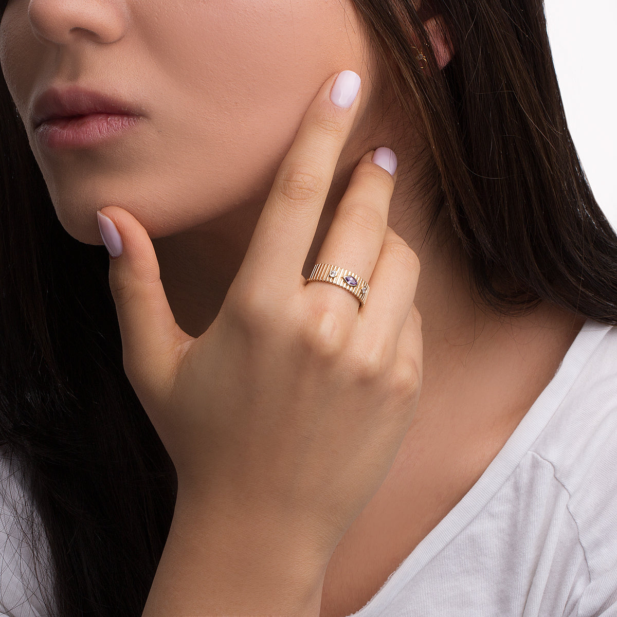 Elevate your elegance with the Purple Vision Ring, crafted in luxurious 18k gold and adorned with dazzling diamonds. This sophisticated piece captures a unique blend of timeless beauty and modern allure, perfect for making a refined statement on any occasion. Its exquisite design enhances your style with subtle brilliance and enduring charm.
