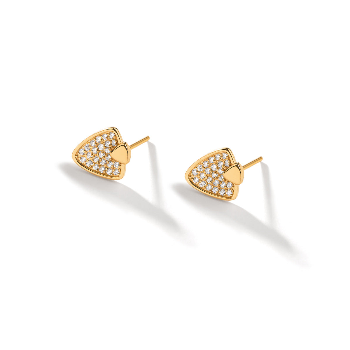 Indulge in luxury with our Ronica Stud Earrings. Crafted from 18k solid gold, these earrings are adorned with beautiful round cut diamonds. Elevate any outfit and radiate sophistication with this exclusive piece. Make a statement with elegance and refinement.