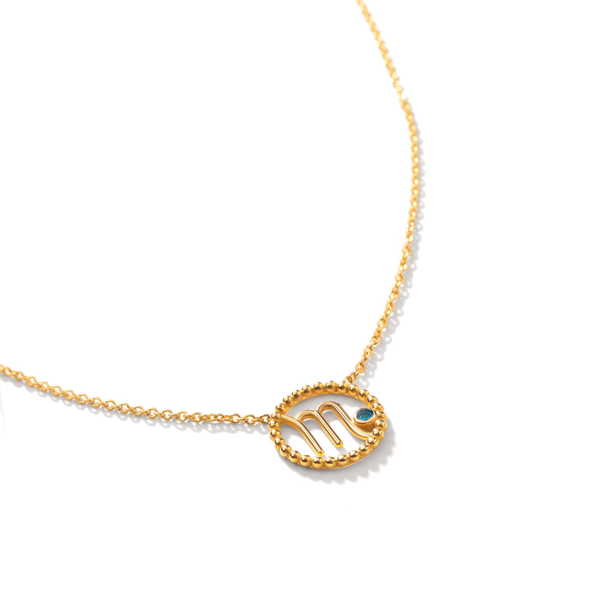 Adorn your neck with elegance when you wear the Scorpius Gem Necklace. Crafted from 18k gold, it features the Scorpius zodiac sign, a symbol of strength, passion and inspiration. Its intricate design is a testament to its superior quality, making it the perfect addition to your collection.
