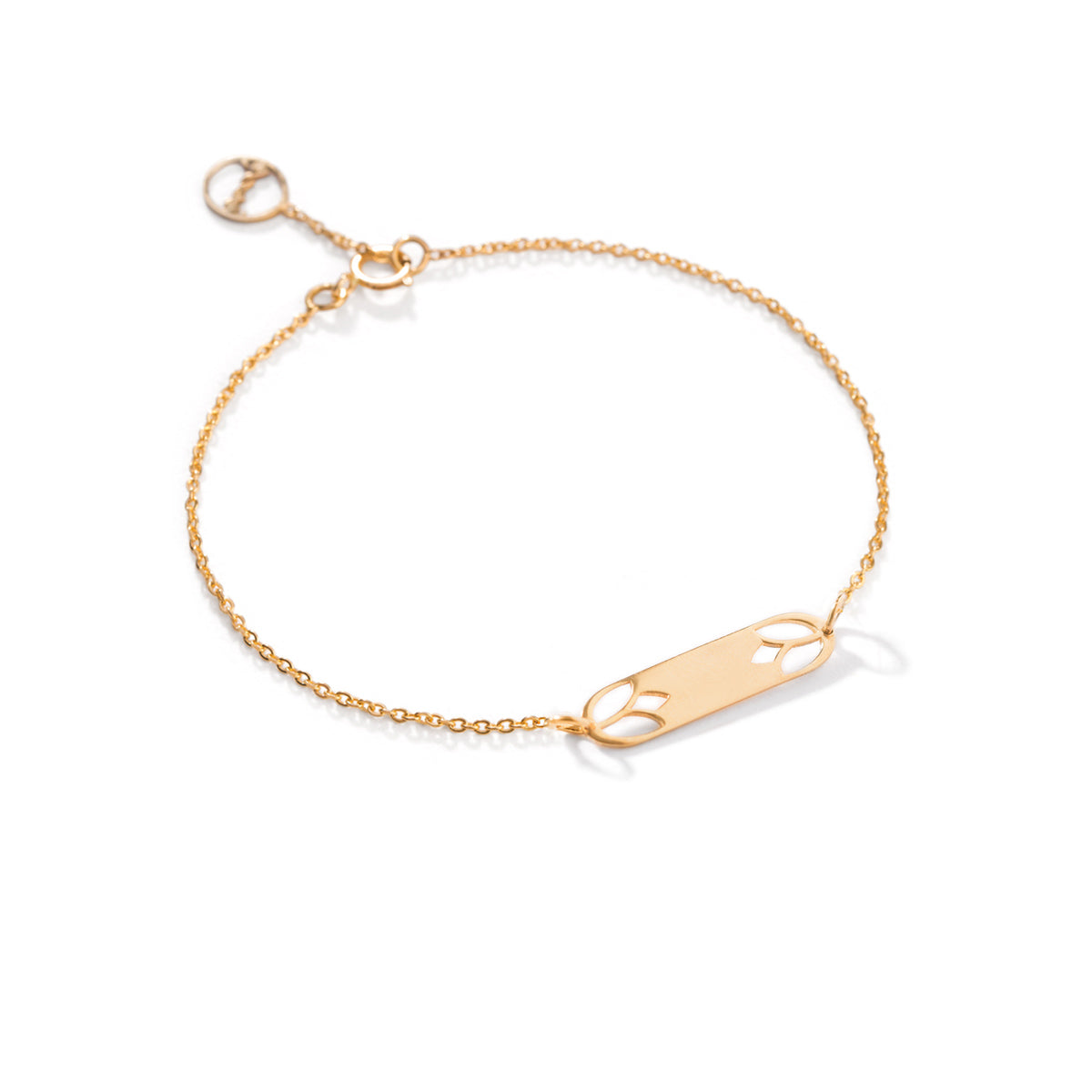 Indulge in luxury with the Seedling Chain Bracelet. Crafted from 18k solid gold, this exquisite piece features a unique rectangle plate adorned with delicate leaf carvings. Elevate your style and add a touch of sophistication to any outfit with this stunning chain bracelet.