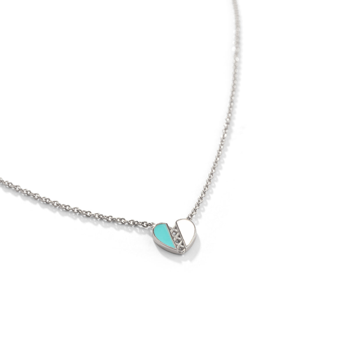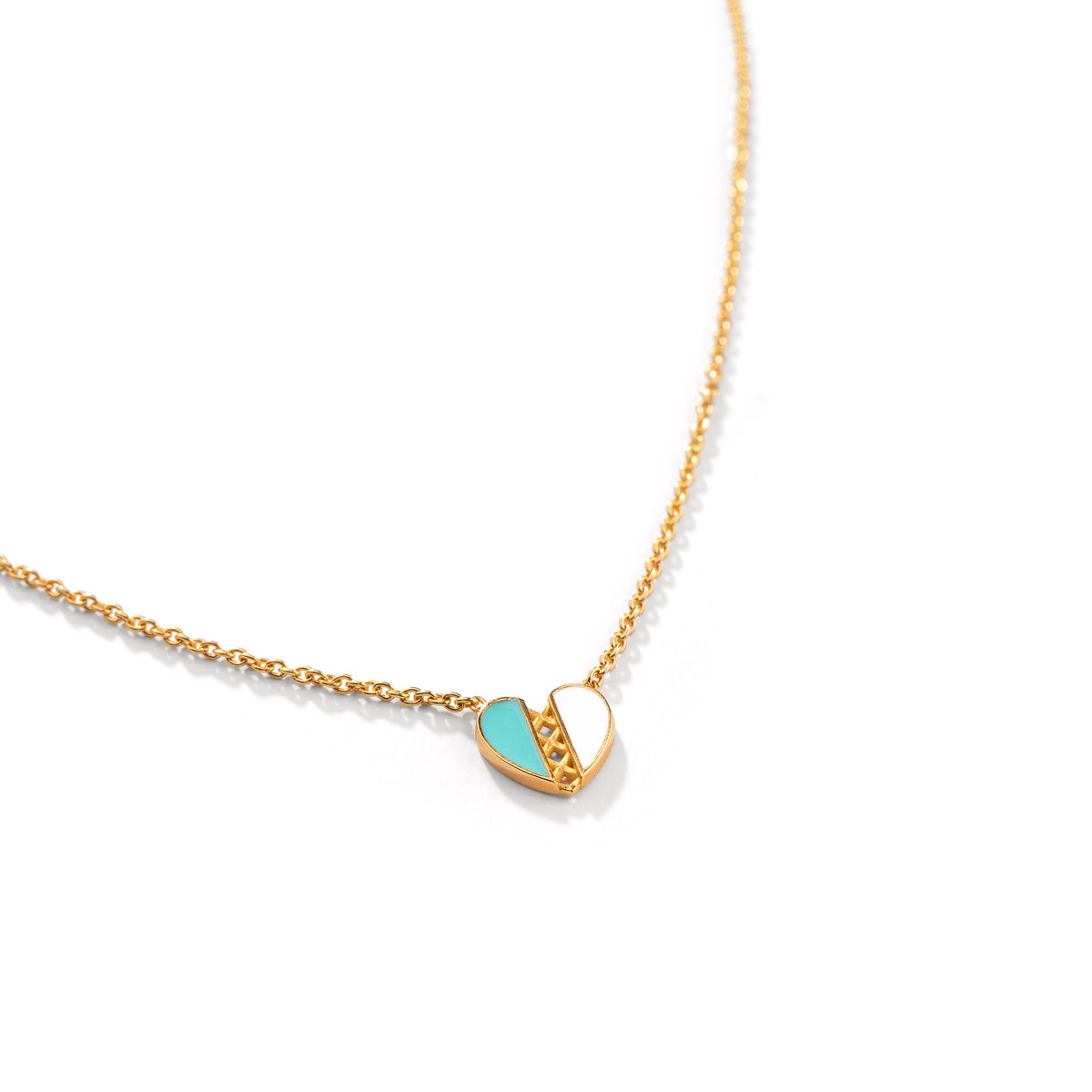Indulge in luxury with our Separated Heart Enamel Necklace. Crafted from 18k solid gold, the pendant features a unique separated heart design, with one half adorned in elegant white enamel and the other half in rich Persian blue. A stunning piece that symbolizes love and individuality.