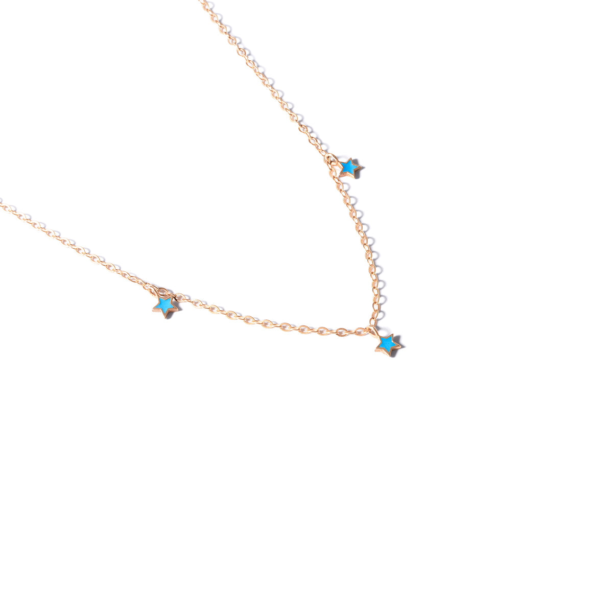 Indulge in celestial luxury with our Stars Chain Necklace. The blue enamel and 18k gold create a stunning contrast, accentuating the intricate star designs. Elevate any outfit with this elegant and exclusive piece, perfect for those who desire a touch of artistic sophistication.