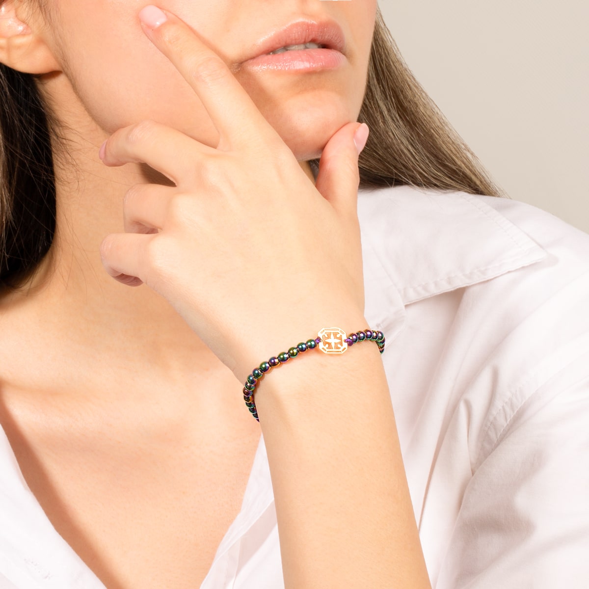 Elevate your wrist with our Symmetrical Flower Beads Bracelet. Handcrafted with 18k gold, this exquisite piece features symmetrical flower beads that add a touch of luxury to any outfit. Embrace the beauty and sophistication of this bracelet and make a statement wherever you go.