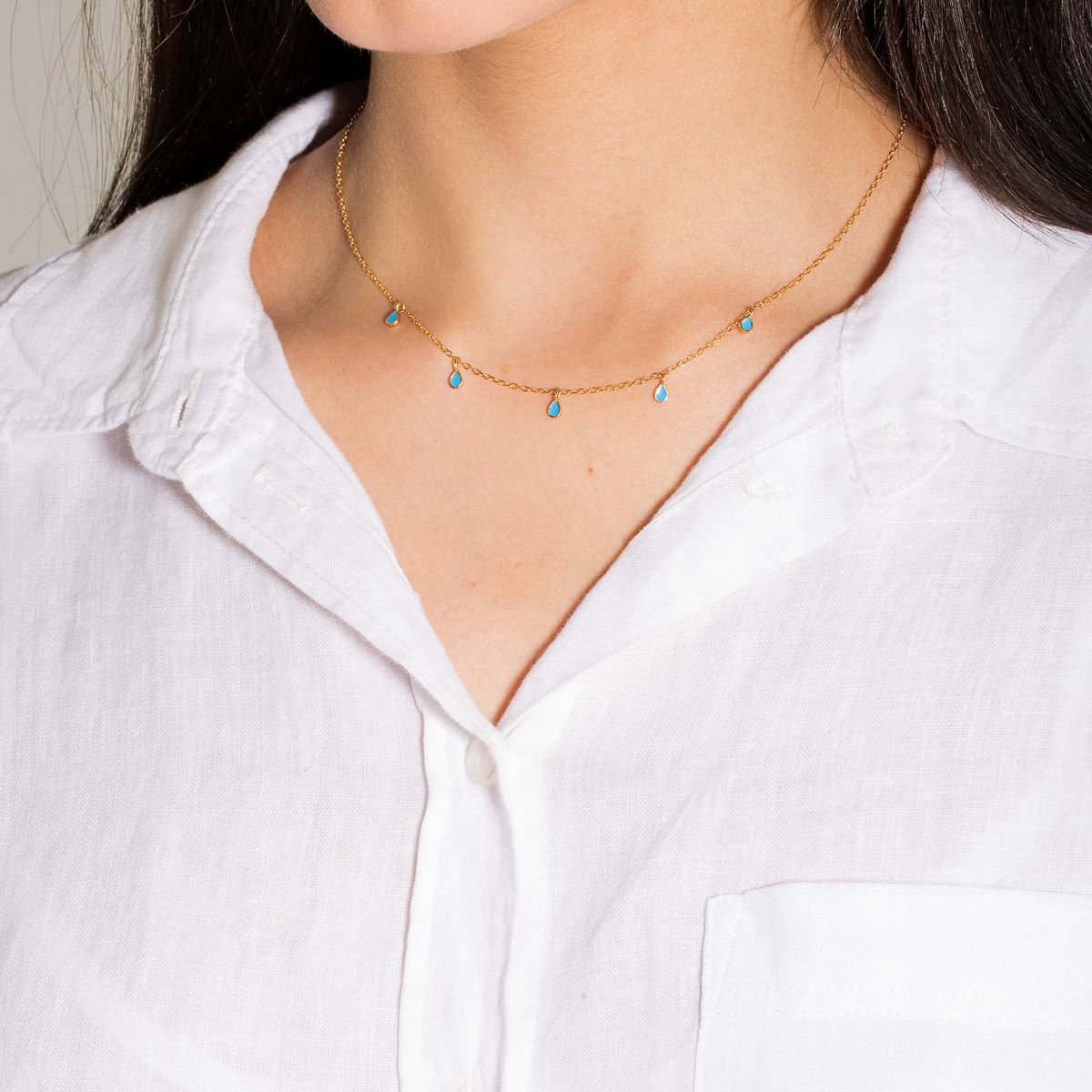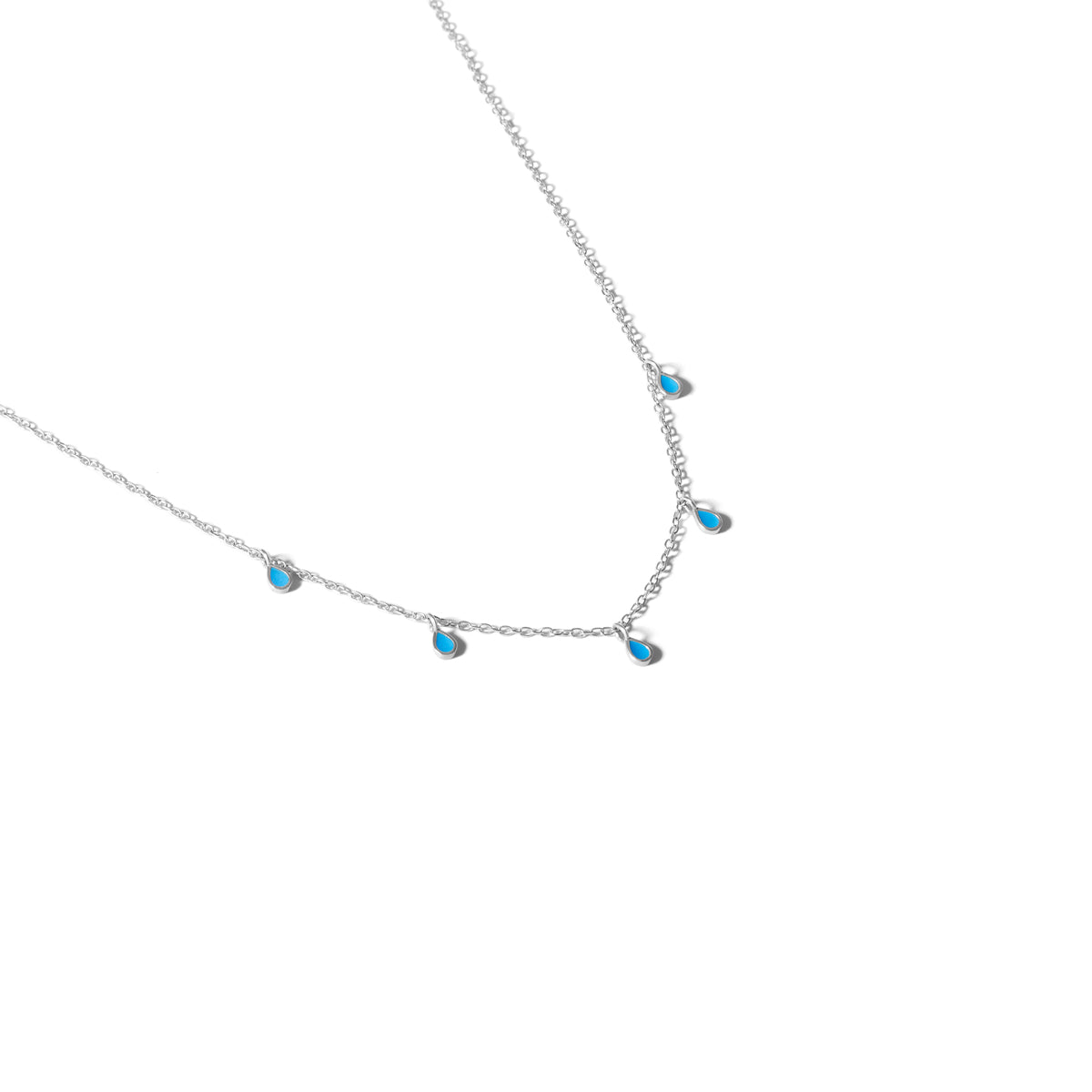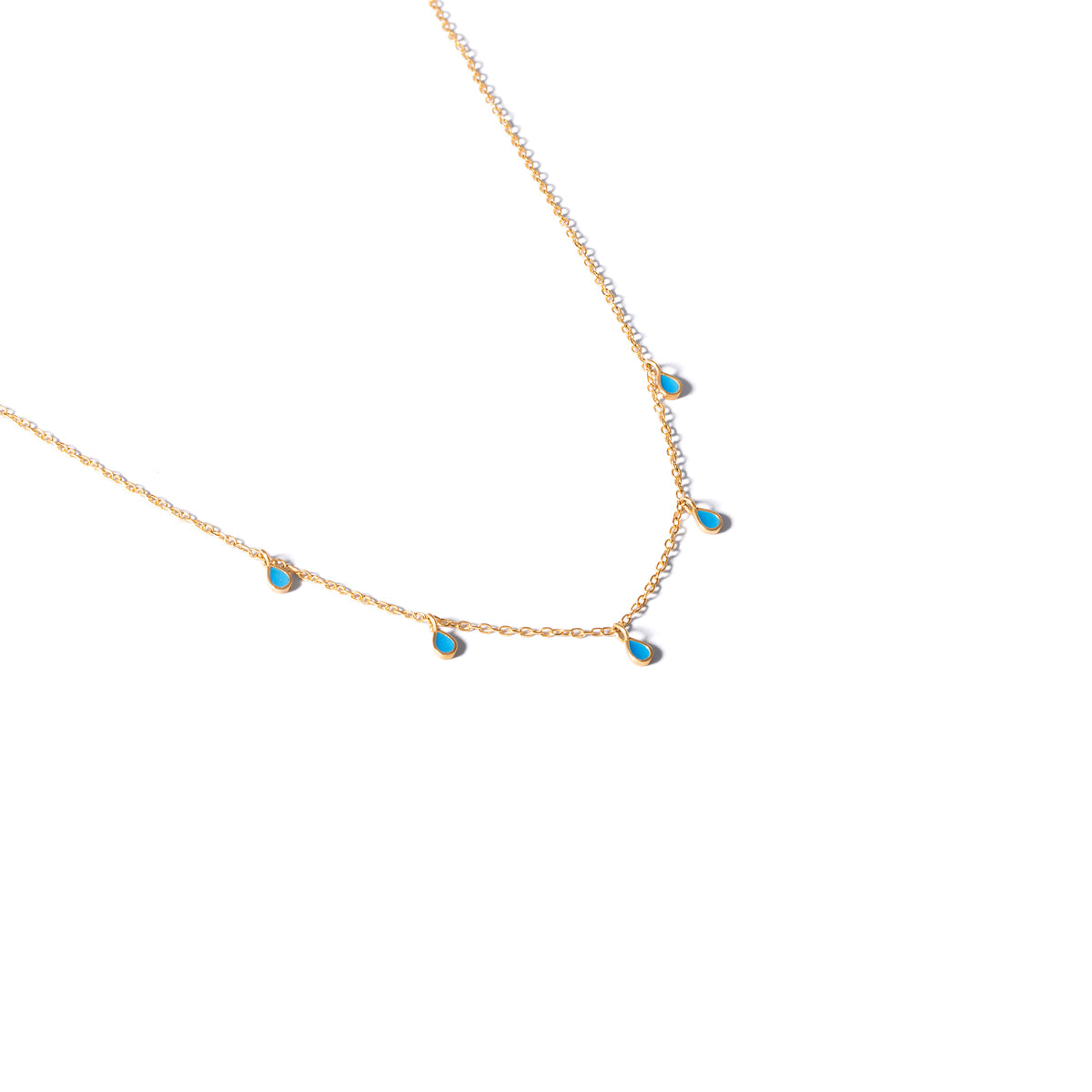 Indulge in the timeless elegance of the Tear Station Necklace. Made with 18k solid gold, this stunning piece features intricate blue enamel detailing along its tear-shaped stations. Perfect for adding a touch of sophistication to any outfit. Elevate your style with this luxurious necklace.