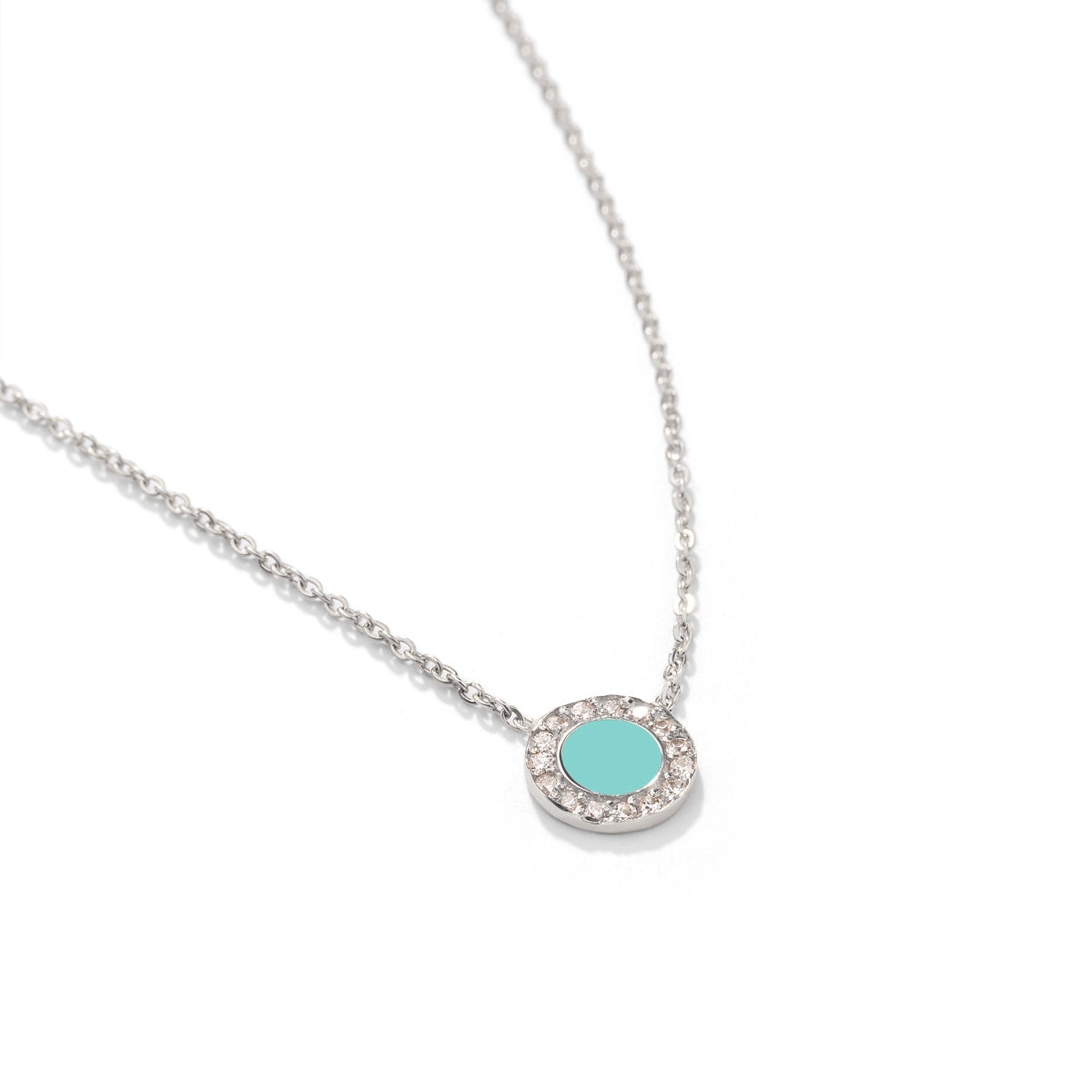 Indulge in luxury with our Turquoise Glare Enamel Necklace. Made with 18k solid gold and adorned with round cut diamonds, this necklace exudes elegance and sophistication. The stunning Turquoise Enamel adds a unique touch, making you stand out and feel truly luxurious. Elevate your style with this exclusive piece.
