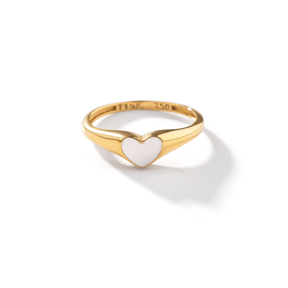 Indulge in the epitome of elegance with our White Heart Enamel Ring. Crafted from 18k gold and adorned with white enamel, this ring is a symbol of everlasting love and sophistication. Add a touch of luxury to any outfit with this exquisite piece.